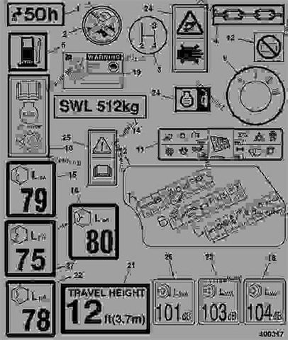 Biểu tượng: Số tải trọng lớn (ví dụ: 1.25) kèm biểu tượng cảnh báo.